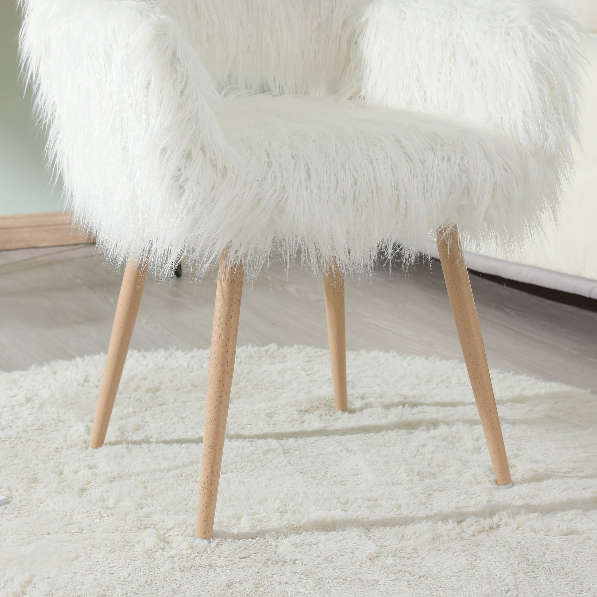 WHITE Faux Fur Upholstered Make up chair Side Dining Chair with Metal Leg(WHITE+Beech Metal Leg)
